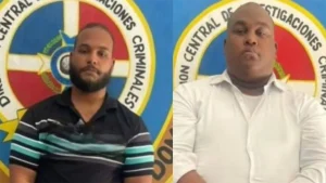 Los detenidos fueron identificados como Ángel Adriano Báez (Ángel), de 26 años, y Deuris Misael Florián Matos, de 31, quienes según el informe preliminar habrían participado en un desfalco de RD$29,000,000.00.