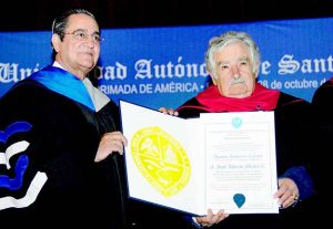 El rector de la UASD en 2016, Iván Grullón, entregó al expresidente de Uruguay, José Mujica, el título que lo reconoce como Doctor Honoris Causa de esa casa de altos estudios.