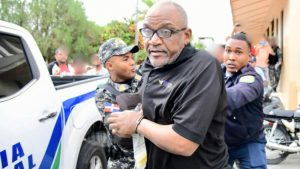 Tras concluir el proceso, Nazario Mercedes fue sacado del tribunal bajo estrictas medidas de seguridad y con su cabeza protegida, mientras vestía t-short negro, jean azul y tenis blancos.