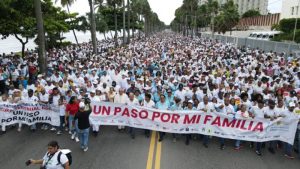 Santo Domingo, R.D.-Personas de diferentes lugures del territorio nacional participaron en la marcha  convocada por Monseñor Carlos Tomás Morel Displás, nuevo arzobispo coadjuntor de Santo Domingo, cuya consigna es a mantener a Dios como centro en sus hogares, para que puedan guiar con fe y amor.