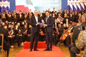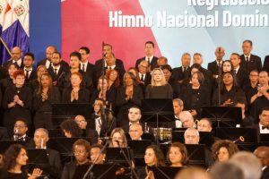 Santo Domingo, R.D.-La regrabación oficial del himno nacional, el cual fue interpretado por el Coro Nacional y la Orquesta Sinfónica Nacional bajo la producción y coordinación de Juan Luis Guerra y Janina Rosado, fue encabezada por el presidente Luis Abinader.