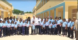 Barahona.– Con la presencia del presidente Luis Abinader El Gobierno inauguró este domingo un moderno centro educativo en la comunidad Los Blancos, Enriquillo, provincia Barahona, que beneficiará a más de 560 estudiantes de la zona.