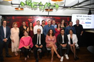 Joaquín Geara, Cuquín Victoria, Cecilia García, Felipe Polanco (Boruga), Lissette Goico y Orlando Prieto durante el evento humorìstico «Una noche con propósito».
